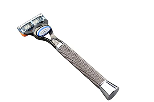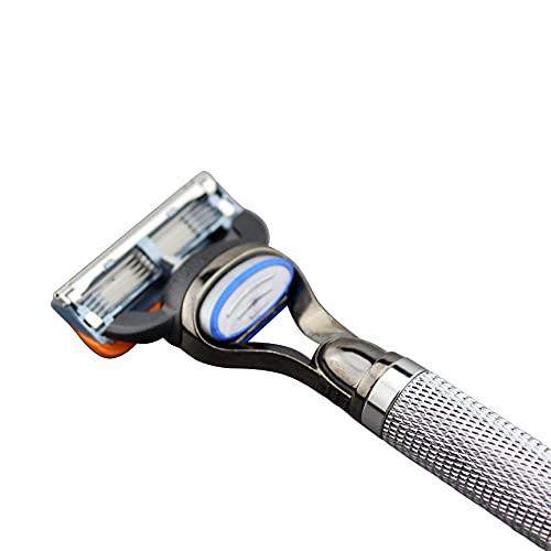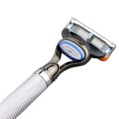 Chrome Metal Handle Fusion 5 Blade Cartridge Manual Razor Shaver Anti Slip Handle