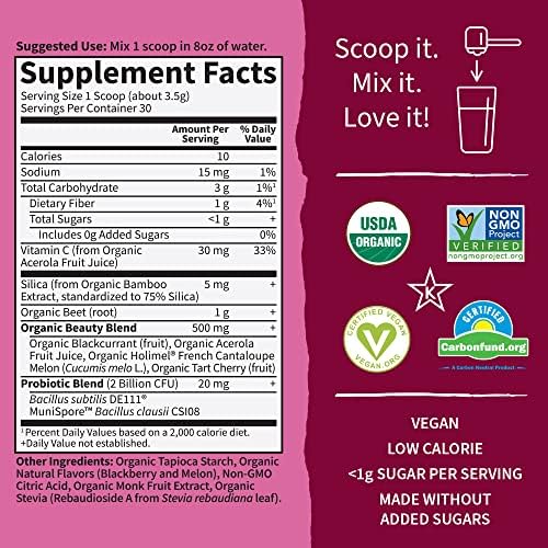 Garden of Life Organic Beet Root Powder with Antioxidants, Vitamin C, Probiotics, French Melon and Black Currant for Hair, Skin & Nails – Beets Beauty – Vegan, Non GMO, BlackBerry Melon – 30 Servings