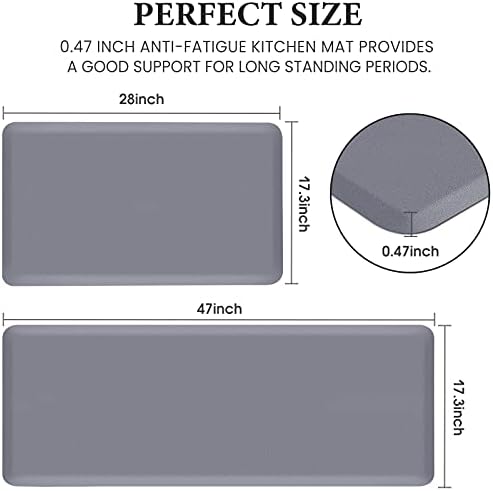 Kitchen Mat [2PCS] Cushioned Comfort Anti-Fatigue Floor Mat, Waterproof Non-Slip Kitchen Rugs, Thick Perfect Ergonomic Foam Standing mat for Kitchen, Home, Office, Laundry,Grey