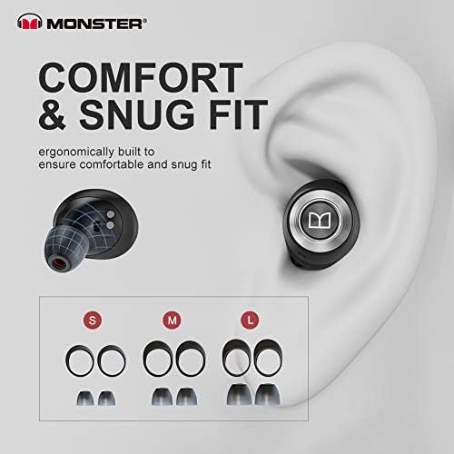 [Bluetooth Headphones]The ergonomic Monster earbuds ensure comfortable fit and lightweight design, ensuring that you will not feel tired after listening for long. Lightweight and portable, SportClips x 3 pairs, Eartips x 3 pairs (S, M ,L), 6 sizes of earbuds are suitable for different people, maximizing immersion in sound and minimizing external noise. 12 month Worry-Free Service, any questions please feel free to contact us, we will provide you with the best customer service in 8 hours.