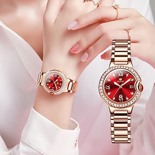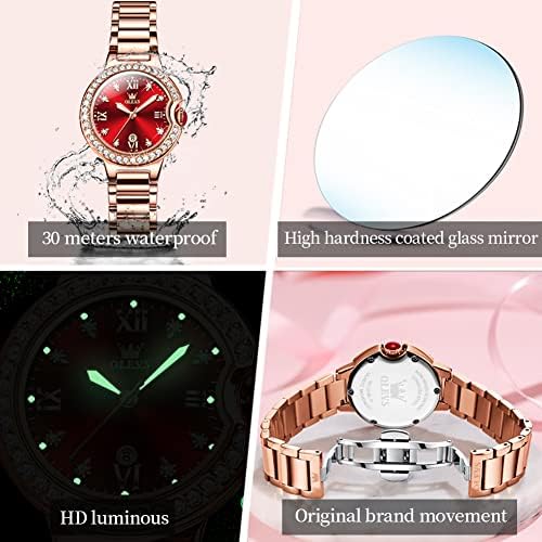 OLEVS Women Watch Rose Gold Fashion Diamond Dress Ladies Watches 3atm Waterproof Luminous Date Quartz Analog Wrist Watch Gift Set