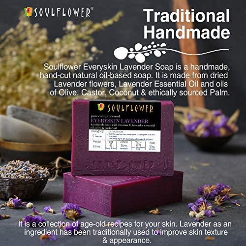 Soulflower Lavender Handmade Soap,100% Natural, Vegan & Cold processed, USFDA approved, SLS Free – Indian Formulation (5.3Oz x 2 Bars)