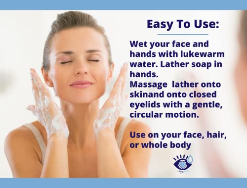 Easy to Use → Wet your face and hands with lukewarm water. Lather soap in hands. Massage lather onto skin and onto closed eyelids with a gentle, circular motion. Rinse and pat dry with a soft towel. Repeat every morning and evening for best results.