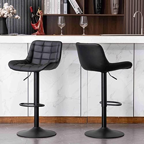 YOUTASTE Black Bar Stool Set of 2 PU Leather Padded Counter Height Bar Stools,Adjustable Swivel Metal Bar Chairs with Back for Home and Kitchen Island